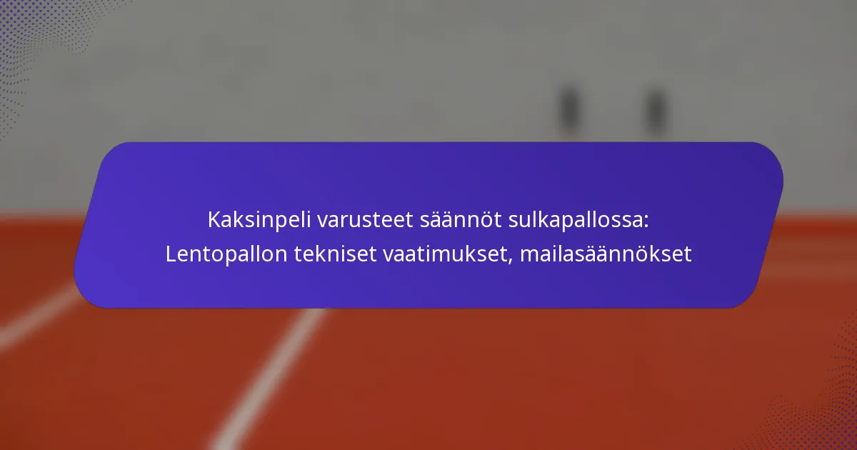 Viralliset sulkapallojen vaatimukset pari-badmintonissa sisältävät tietyt mitat, painovaatimukset ja materiaalityypit, jotka varmistavat johdonmukaisen suorituskyvyn pelin aikana. Näiden vaatimusten ymmärtäminen on ratkaisevan tärkeää pelaajille ja valmentajille, jotta he voivat valita oikeat varusteet kilpailuotteluihin.