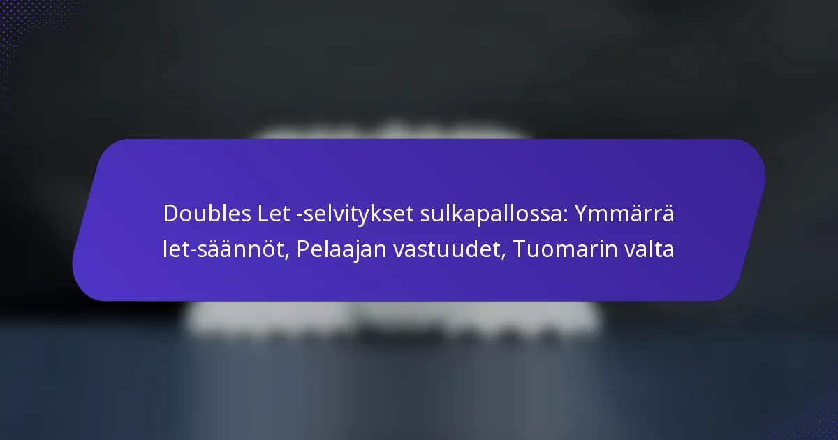 Badmintonin nelinpelissä let-tilanne syntyy, kun peli keskeytetään ja pelataan uudelleen tiettyjen olosuhteiden vuoksi, joten pelaajien ja tuomareiden on tärkeää ymmärtää let-säännöt reilun pelin takaamiseksi. Pelaajien on oltava tietoisia vastuistaan let-tilanteessa, mukaan lukien tilanteen tunnistaminen, kommunikointi kumppanin ja tuomarin kanssa sekä strategian mukauttaminen. Tuomareilla on valta tulkita sääntöjä ja tehdä lopullisia päätöksiä let-kutsuista, mikä vaikuttaa merkittävästi pelin kulkuun ja pelaajien taktiikoihin.