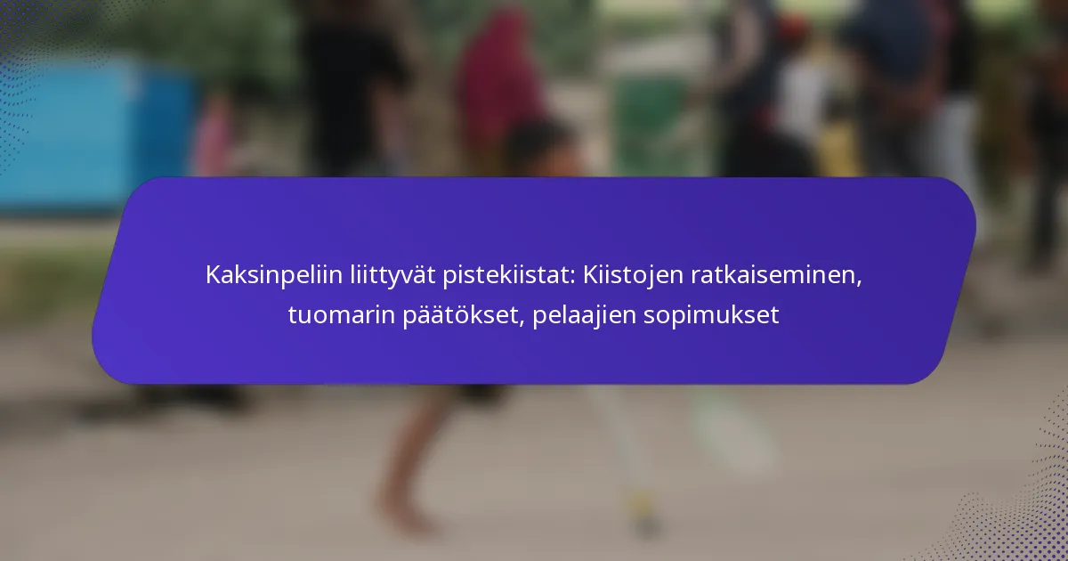 Tuplapelin pisteytys tenniksessä määräytyy erityisten sääntöjen mukaan, jotka ovat ratkaisevia reilun pelin ylläpitämiseksi ja erimielisyyksien ratkaisemiseksi. Selkeä viestintä pelaajien kesken, vakiintuneiden menettelyjen noudattaminen ja tuomareiden osallistuminen ovat olennaisia erimielisyyksien tehokkaassa käsittelyssä otteluiden aikana. Tuomareilla on valta tehdä sitovia päätöksiä, varmistaen pelin eheyden säilymisen.