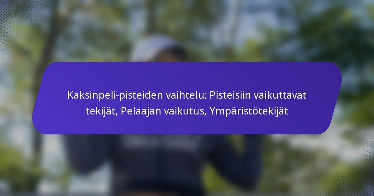 Paridoubles-pisteiden vaihteluun vaikuttavat useat keskeiset tekijät, kuten käytettävät säännöt ja pisteytysjärjestelmät, paridoubles- ja yksinpeli-pelin väliset erot, pelaajien strategiat, tiimityö ja tilastolliset trendit. Näiden elementtien ymmärtäminen voi auttaa pelaajia ja valmentajia optimoimaan suoritusta ja mukauttamaan lähestymistapojaan otteluiden aikana.